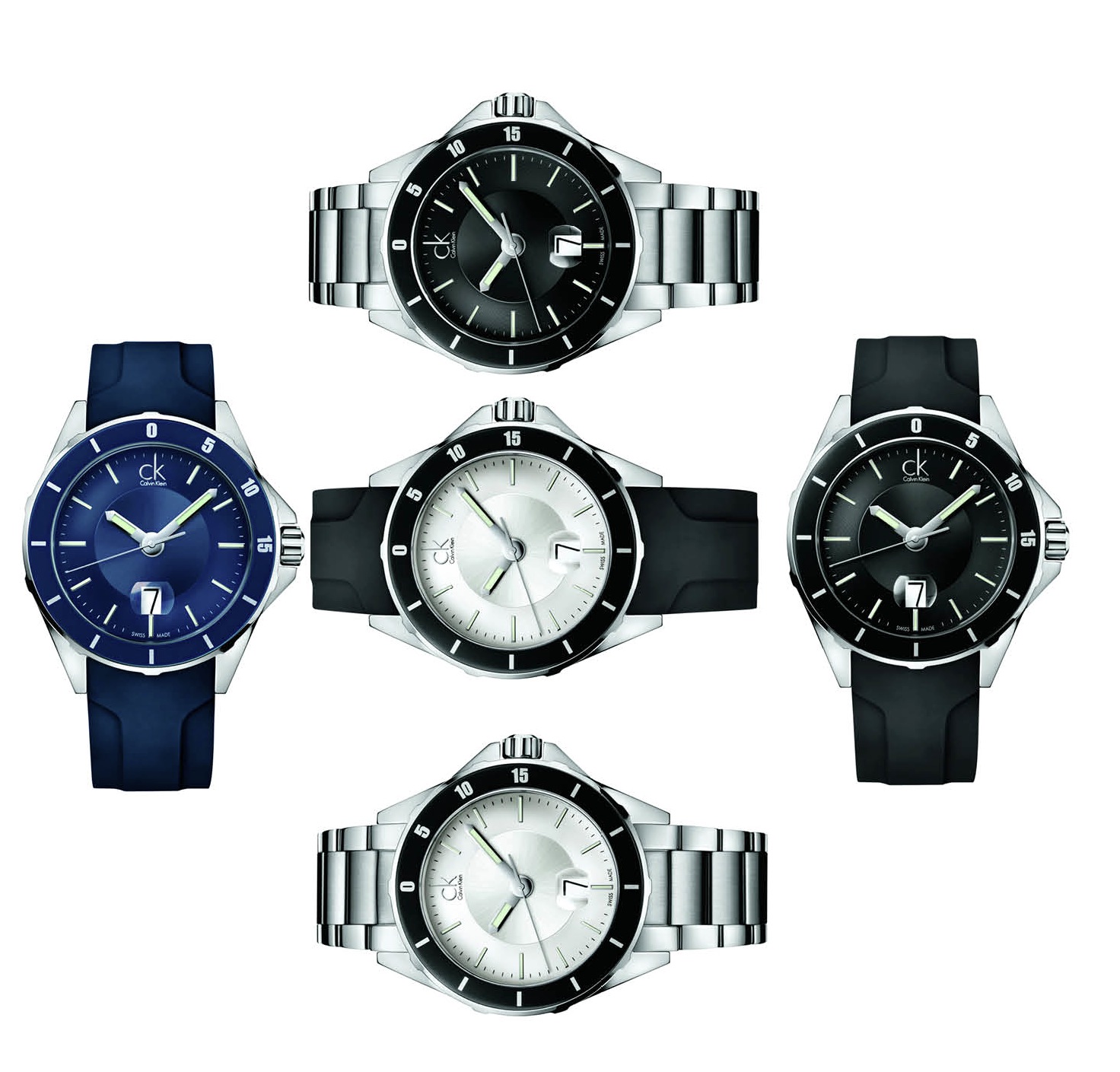 In der Linie Play kombiniert Ck Watches ein robustes Edelstahlgehäuse mit einer drehbareren Lünette und farbigen Zifferblättern. Wahlweise sind diese in Schwarz, Dunkelblau oder Silberfarben erhältlich. Kautschukarmbänder in einer korrespondierenden Farbpalette oder matte Edelstahlarmbänder runden den sportiven Stil ab. Die Datumsanzeige auf 6 Uhr wird durch ein Vergrößerungsglas effektvoll hervorgehoben. Für den Antrieb sorgt ein Quarzwerk aus dem konzerneigenen Eta-Regal. Die Varianten mit Kautschukband sind bereits jetzt für 295 Euro im Laden erhältlich. Wer seine Uhren mit Edelstahlband trägt, muss sich mit dem Kauf noch bis Oktober gedulden. Der Preis wird dann aber ebenfalls 295 Euro betragen.