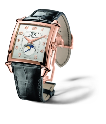 Das Gehäuse – wahlweise in Roségold oder Stahl erhältlich – hat ein Außenmaß von 36,1 mal 35,25 Millimetern und zeigt, dass ein guter Designer auch bei kleineren Uhren eine gute Ablesbarkeit realisieren kann. Für die Goldvariante müssen 24 400 Euro investiert werden.