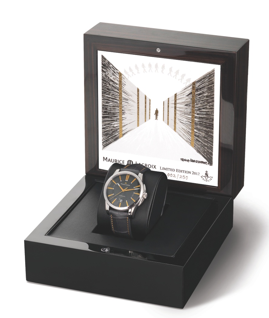 Die Zusammenarbeit von Maurice Lacroix mit der Staatlichen Majolika Manufaktur Karlsruhe hat sich schon zu einer Tradition entwickelt. Auch in diesem Jahr dürfen sich Sammler wieder über ein Sondermodell freuen, das in einer Box gemeinsam mit einer limitierten Keramik-Fließe ausgeliefert wird. Entworfen wurde die Fliese von der international bekannten Künstlerin Franziska Schemel, welche ihr Studium für Malerei an der Staatlichen Akademie der Bildenden Künste in Stuttgart im Jahr 1990 absolvierte und seitdem als freischaffende Künstlerin in Karlsruhe arbeitet.