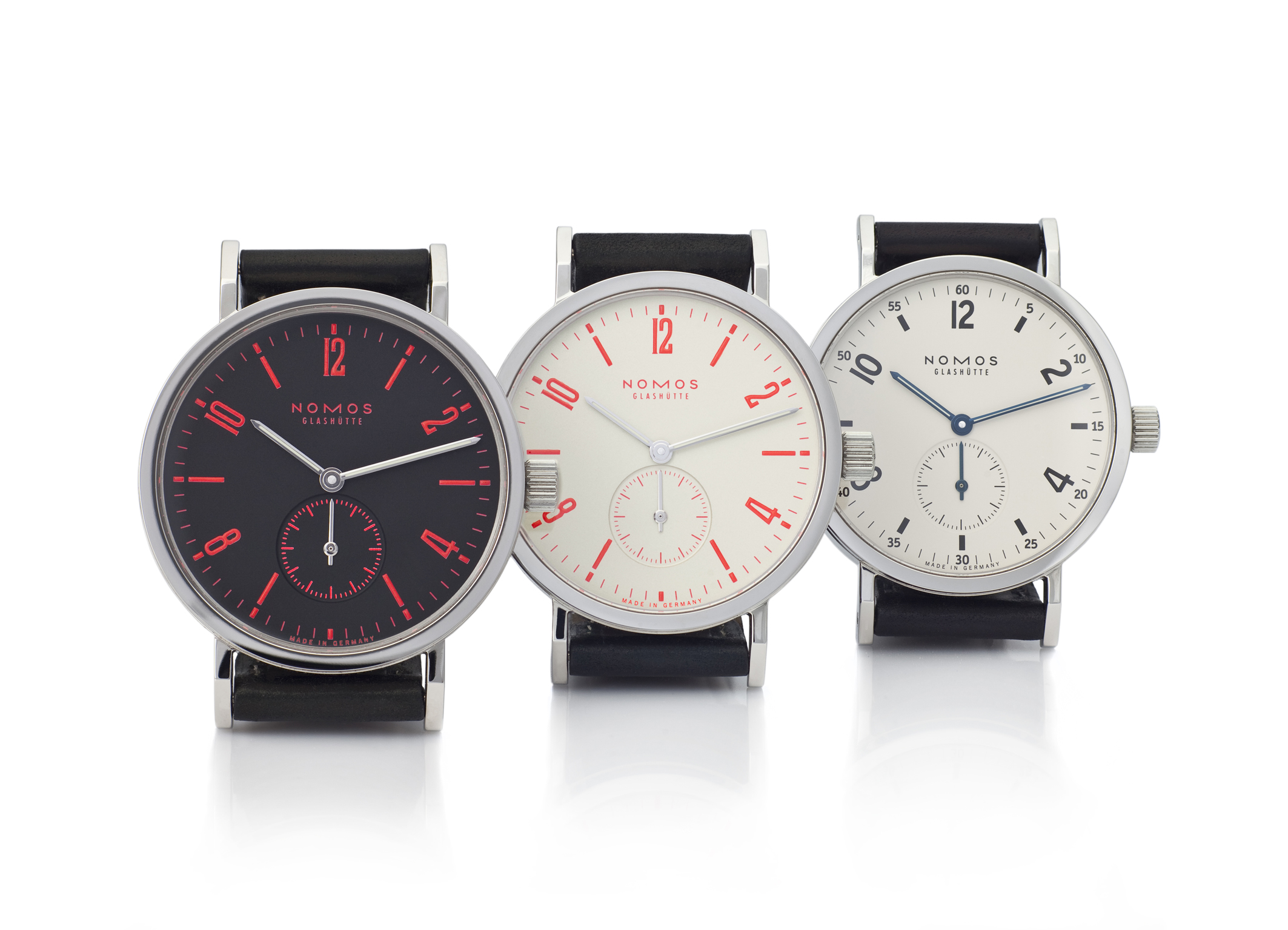 Dank satt leuchtender Ziffern und Zeiger gilt dies sogar für Überstunden, denn auch nachts ist die Zeit auf diesen Uhren unübersehbar. Das Modell Jump gibt durch den Saphirglasboden dabei gar den Blick aufs Kaliber frei. Das auf dem Designklassiker der Marke basierende Trio ist mit dem bewährtem Handaufzugs-Manufakturkaliber Alpha ausgestattet. Wie bei allen Uhren aus der Wempe-Kollektion sind die drei Nomos-Modelle 100 Euro günstiger als die Verwandtschaft aus der Serienproduktion.