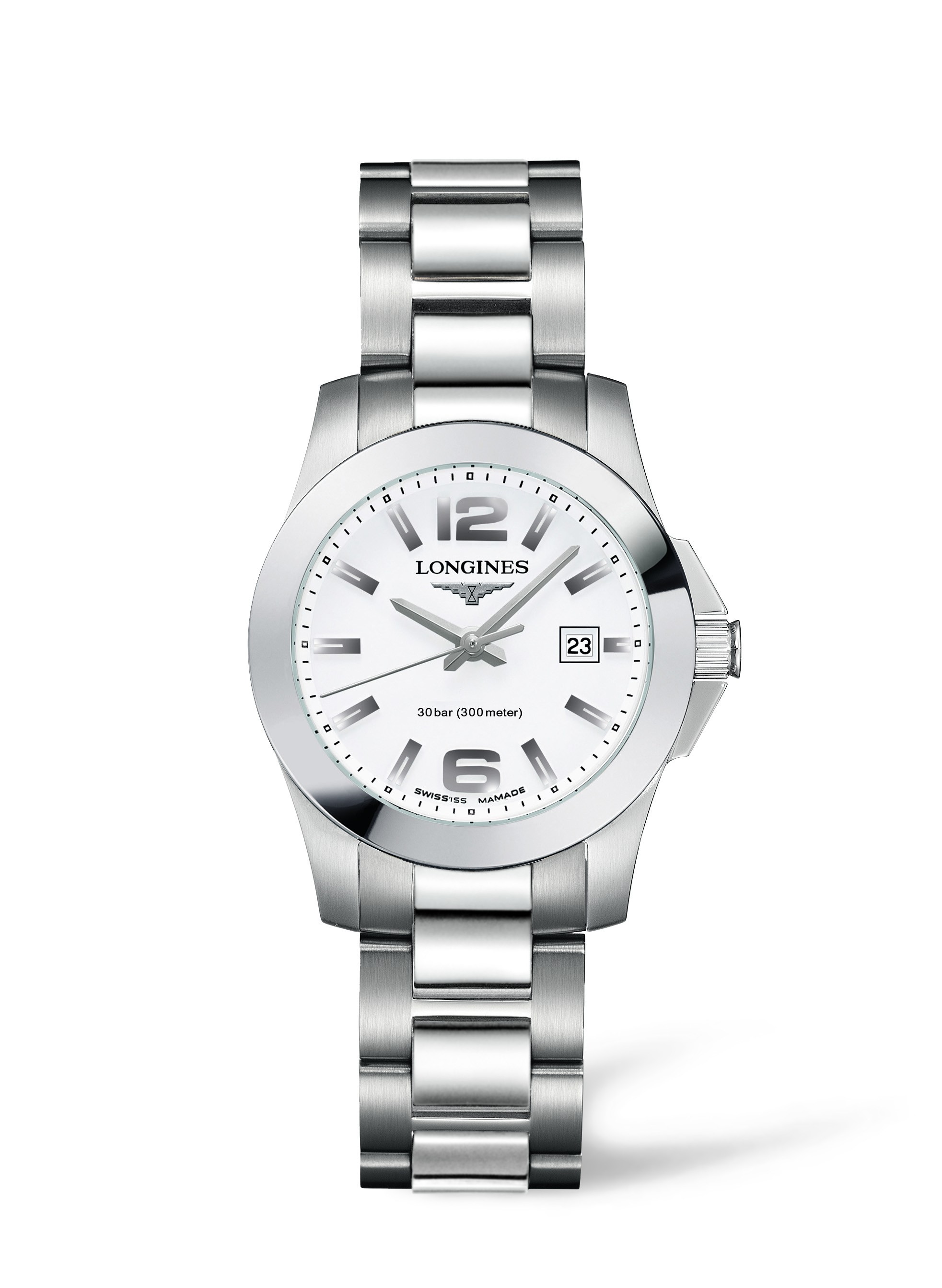 Dass eine gut ablesbare Uhr nicht unbedingt groß sein muss, belegt Longines mit der Conquest. Keine 30 Millimeter misst ihr Durchmesser und dennoch ist die Uhrzeit immer klar und deutlich erkennbar. Band und Gehäuse liegen angenehm am Arm an und machen sich selbst bei intensiver sportlicher Aktivität in keiner Situation negativ bemerkbar. Dass die Uhr dabei auch ausreichend druckfest ist, macht sie zudem wassertauglich.
