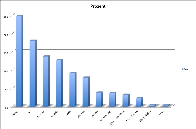 Design, Preis, Funktion und Material sind die mit Abstand wichtigsten Kriterien beim Kauf einer neuen Uhr. Dies hat die Auswertung unserer Umfrage klar ergeben. Für fast 25 Prozent war das Design für den Kauf ausschlagebend.