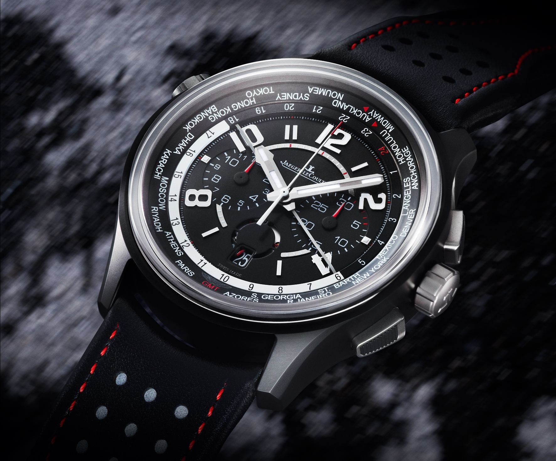 Das ist zum einen die Master Compressor Extreme W-Alarm Aston Martin (limitiert auf 100 Exemplare), eine Uhr mit Weckfunktion und GMT-Anzeige, mithilfe derer sich auf einen Blick die Uhrzeit jeder Zeitzone der Welt ablesen lässt. Eine überaus praktische Kombination, denn die Weckfunktion kann nach langen Reisen durch die verschiedenen Zeitzonen der Erde und die damit einhergehende Zeitverschiebung wichtige Termine retten und vor Verspätungen bewahren. Zumal auch diese Version den von den Armbandweckern von Jaeger-LeCoultre bekannten vollen, kräftigen Klang sein eigen nennt. Die innovative Anzeige des Weckers verbindet ein spielerisches Erscheinungsbild mit absoluter Klarheit: Sie besteht aus zwei Scheiben, die in einem großen Fenster bei neun Uhr sichtbar sind: Eine für die vollen Stunden von eins bis zwölf, die andere für die Viertelstunden.