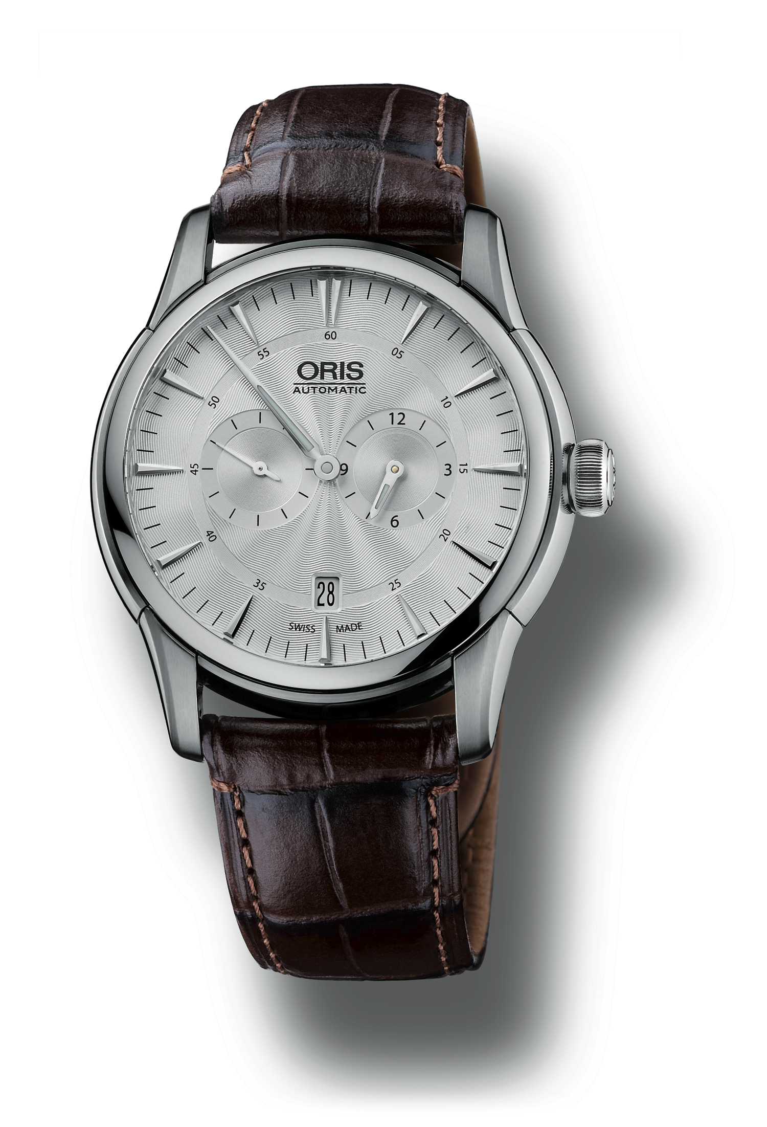 Die neu gestaltete Linienführung der Oris Artelier sorgt dafür, dass sich die Bandanstöße perfekt an das Gehäuse anschmiegen. Die Uhr wirkt deshalb besonders harmonisch. Außerdem ist die Darstellung der Indizes auf dem Zifferblatt weicher geworden. Das Edelstahlgehäuse der Uhr hat einen angenehmen Durchmesser von 40.5 mm und ist bis fünf Bar druckfest. In der Grundausstattung ist die 1700 Euro teure Uhr mit einem Krokolederband ausgestattet.