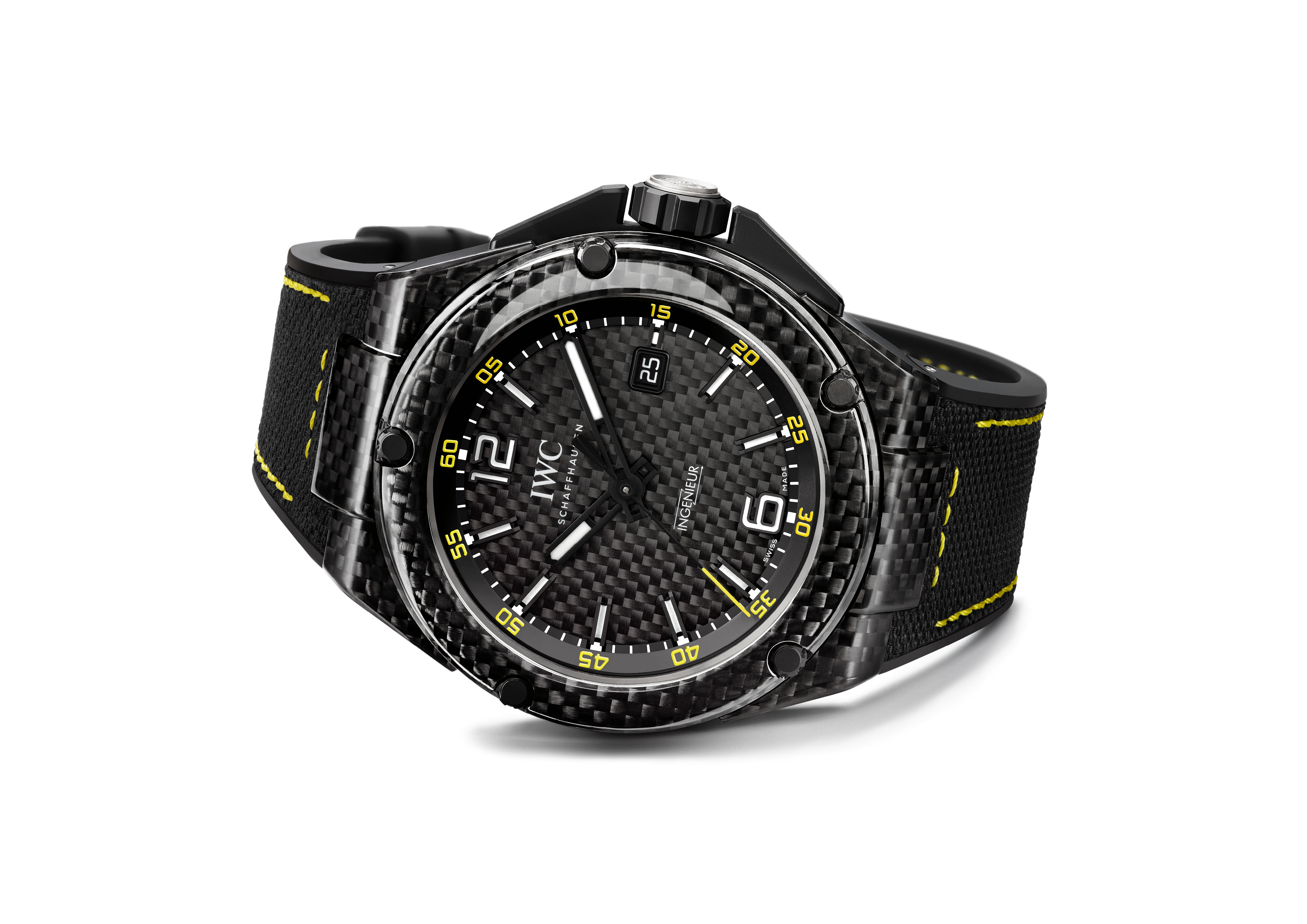 Nun hat IWC die Kollektion, die unter den Fans den liebevollen Namen „Inge“ trägt, komplett überholt und erweitert. Der Anspruch höchster technischer Reife ist geblieben und so vereinigen die neuen Modelle in allen Komponenten modernste Uhreningenieurskunst. Ein Beispiel für diesen Ansatz ist die Ingenieur Automatic Carbon Performance.Wie ihr Name schon sagt, steht bei ihr das aus der Formel 1 bekannte Hightechmaterial Carbon im Zentrum des Designs. Die Wahl des Werkstoffs ist kein Zufall, denn IWC ist seit diesem Jahr Partner des Mercedes-Petronas Formel-1-Teams.