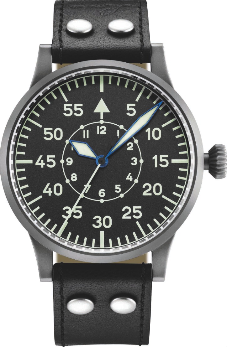Laco bringt die Fliegeruhr in zwei Varianten, die beide auf historische Vorbilder zurückgreifen. Besonders auffällig ist dabei die sogenannte B-Uhr, bei der die Minuterie stark in den Vordergrund gerückt wird. Authentisch ist auch, dass bei beiden Uhren auf Namenszüge oder Logos auf dem Zifferblatt verzichtet wird.