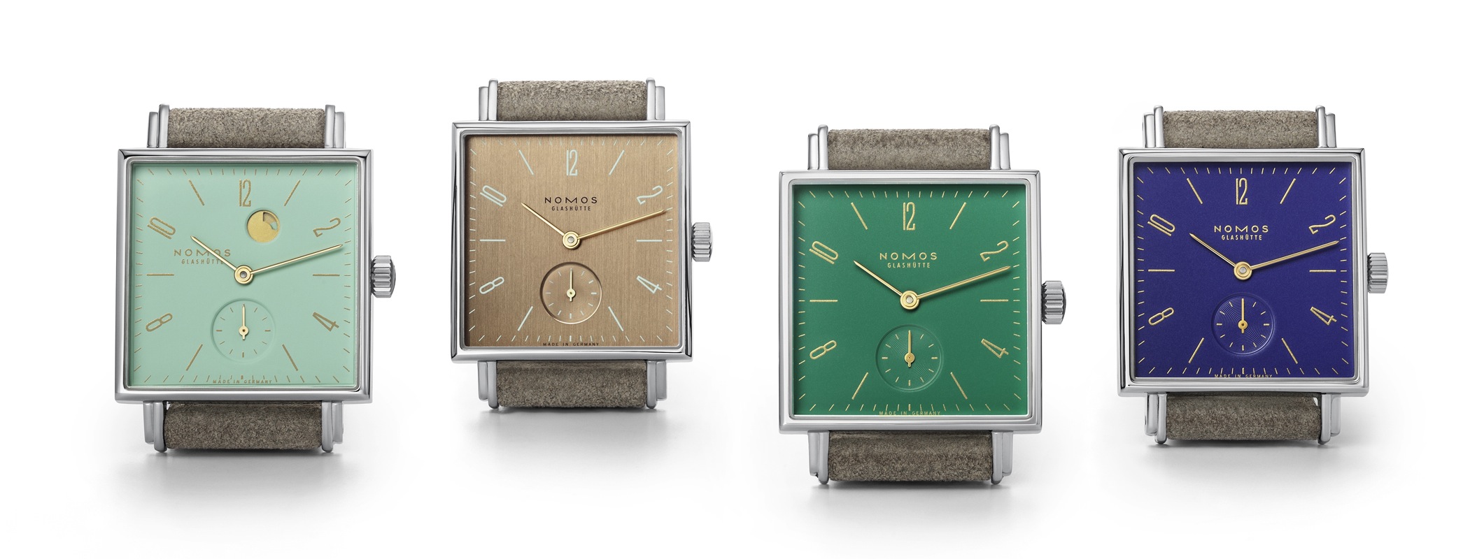 Kleene, Goldelse, Clärchen und Nachtijall… Nein, das sind nicht die Namen der angesagtesten Berliner Szenekneipen, sondern die Bezeichnungen der jüngsten Modellerweiterung von Nomos. Die Glashütter Uhrenmanufaktur lotet ja schon seit einigen Jahren den Reichtum der Farbpalette auf seinen Editionsuhren aus. Nun ist wieder die Tetra an der Reihe: Als keckes Türkis, verheißungsvolles Gold, Billardtisch-Grün und edles Nachtblau bezeichnet Nomos die vom Kreuzberger Designstudio Berlinerblau entworfenen Farbvarianten – so bunt du vielfältig wie die Hauptstadt eben. Gemeinsam ist dieser Berliner Mischung, dass sich über allen Ziffernblättern vergoldete Zeiger drehen und das zweiteilige Edelstahlgehäuse Maße von 29,5 mal 29,5 Millimetern aufweist.